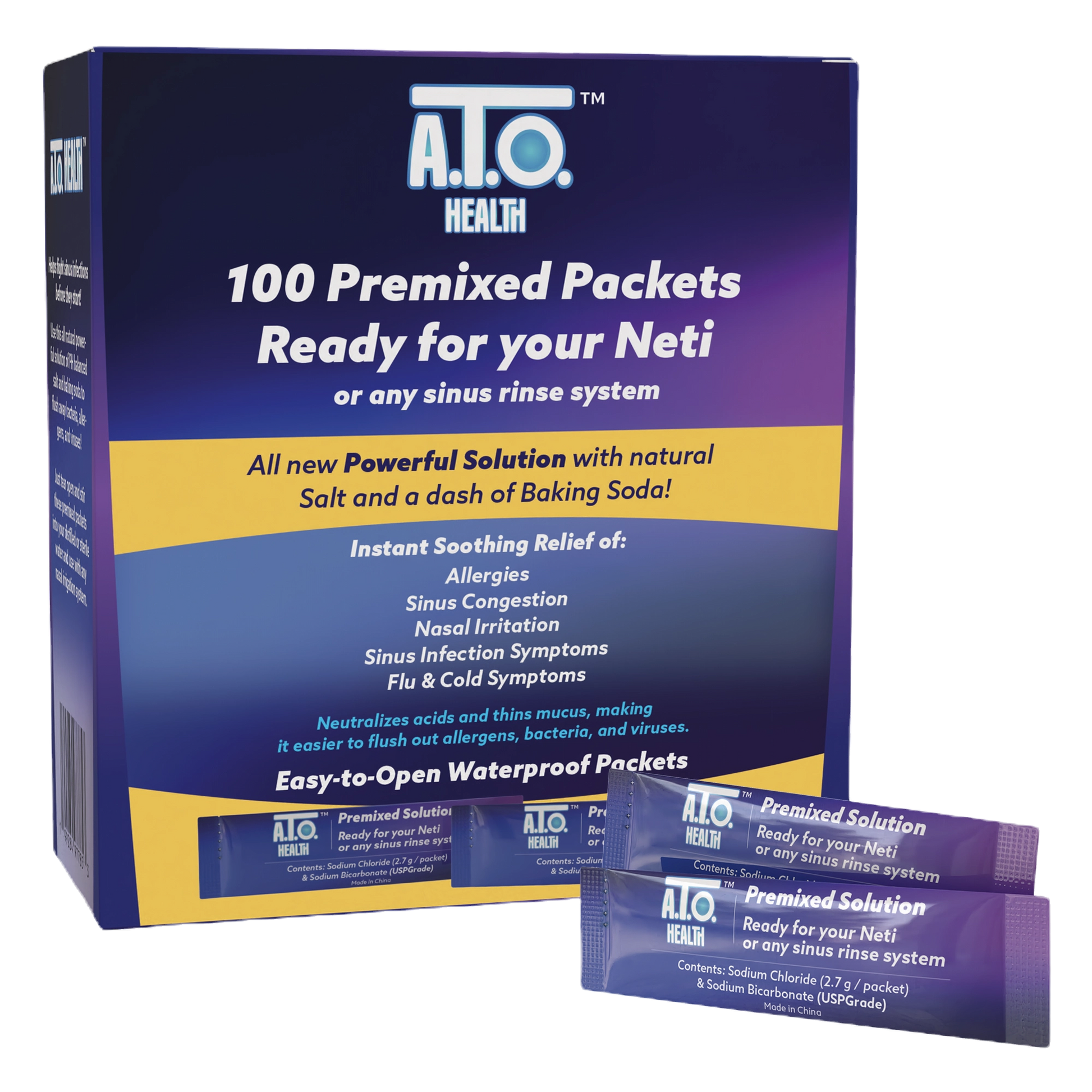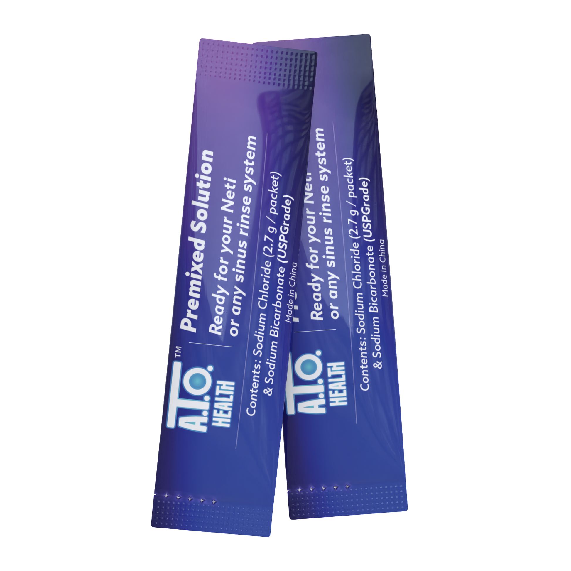 ATO Health Enhanced Sinus Rinse Packets provide fast, natural relief from sinus congestion, allergies, and nasal irritation. Our unique formula is enhanced with baking soda for superior soothing and pH balance, making it gentler and more effective than standard saline rinses.